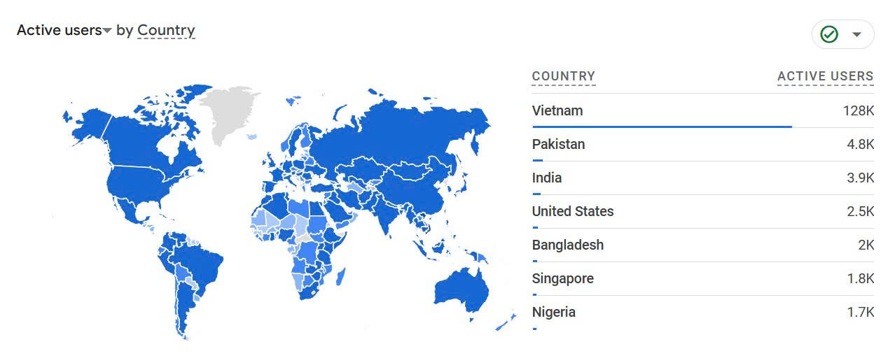 ✅ Cộng đồng người học ngày càng mở rộng, với người dùng đến từ hơn 70 quốc gia trên thế giới.
