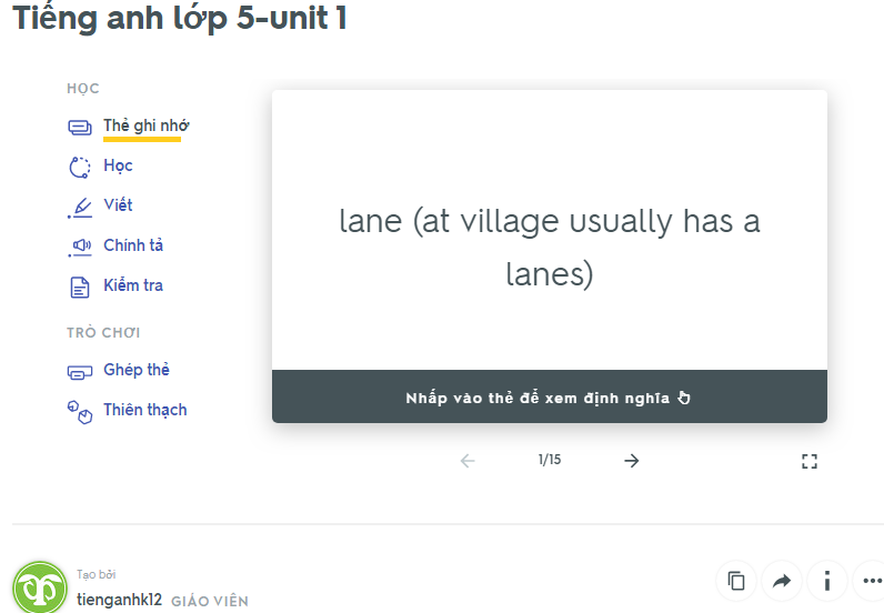 • Trải nghiệm khai thác bộ từ vựng có sẵn: Gồm 25+ bộ từ vựng được tổng hợp công phu dựa theo chương trình GD VN; các giáo trình và sách đọc thêm phổ biến của nước ngoài; chứng chỉ Cambridge, TOEFL, IELTS hay ôn thi chuyên chọn,…